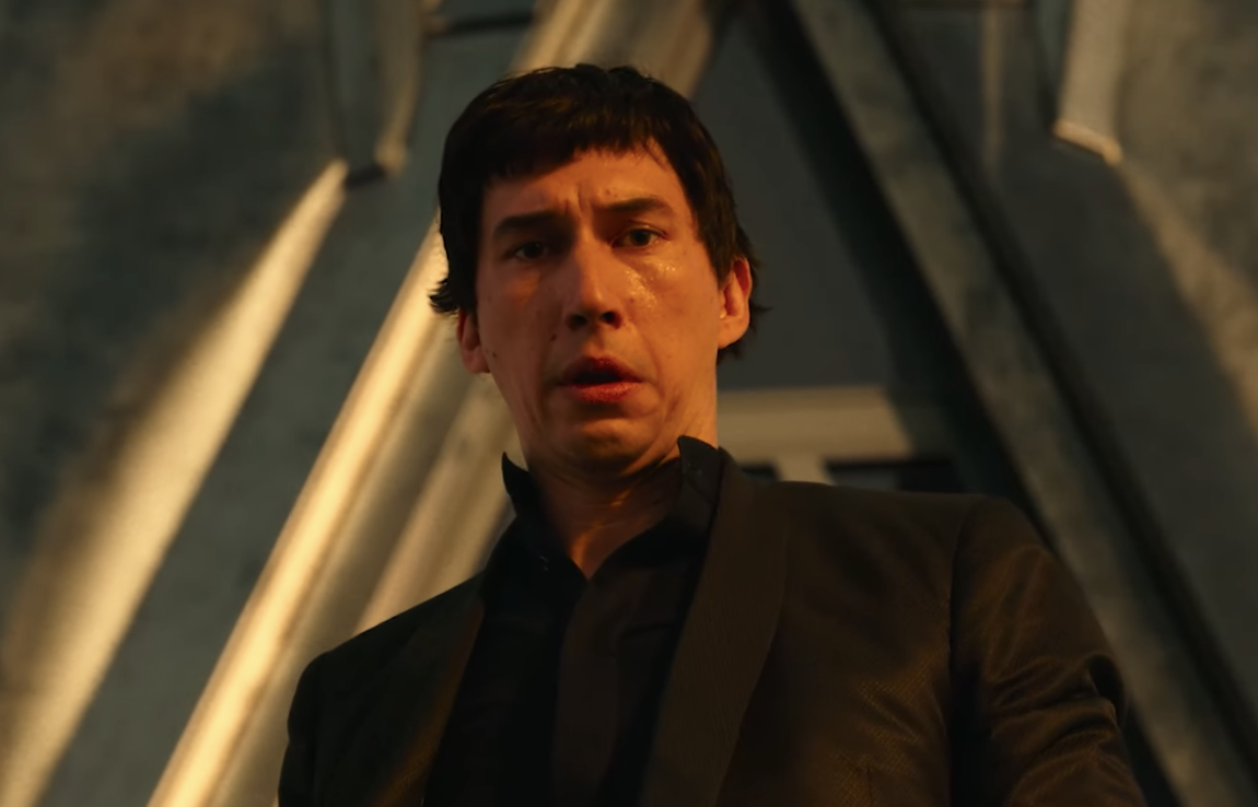 The Megalopolis teaser doesn’t work because (a) I’m unfamiliar with whatever factors have led Adam Driver‘s “Caesar” to contemplate a splattery suicide, (b) having no knowledge of or investment in his situation, I feel nothing, (c) the only thought that came to mind was “he’s obviously spooked but on the other hand he’s shuffling out on the Chrysler building in leather-soled, slippery-ass street shoes?”, and (d) I really hate that James Mason-in-Julius Caesar haircut.