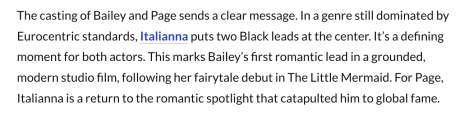 The vaguely chubby Halle Bailey (The Little Mermaid, The Color Purple) and the hunky Rege-Jean Page (Bridgerton, Black Bag) are the fated-to-fall-in-love twosome.