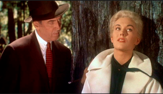 I dove into this because it hit me this afternoon that one of the craziest and most erotically charged on-screen love affairs, the one between James Stewart‘s Scotty Ferguson and Kim Novak‘s Judy Barton (a.k.a. Madeleine Elster) in Alfred Hitchcock‘s Vertigo, never included the nasty. They made out under the Muir redwoods and along the Pacific coast and yes, Scotty did undress Judy/Madelyn after she passed out following a drowning attempt, but they never got down.