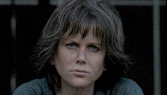 It’s a complex L.A. crime tale about Erin Bell (Nicole Kidman), a wasted, walking-dead Los Angeles detective trying to settle some bad business and save her daughter from a life of crime and misery. It unfolds through a complex, pain-in-the-ass flashback structure, and is punctuated by all kinds of nihilistic, hard-boiled behavior by the mostly criminal flotsam characters.