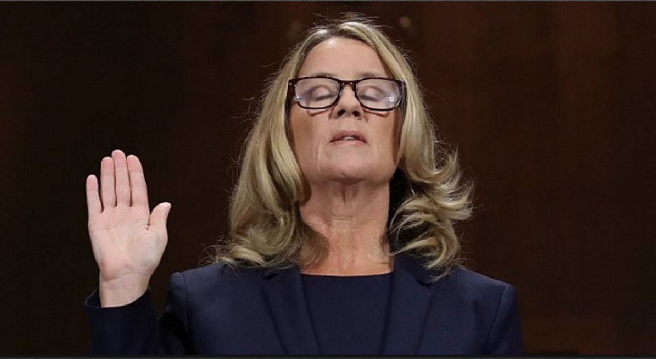 Christine Blasey Ford‘s testimony has been quite touching. She was clearly terrified but everything about her — that look in her eyes, the glasses, the vibe of anxious sincerity, her quiet, quivering voice, her body language, that lock of blonde hair dangling in front of her face and that moment when she choked up when Sen. Diane Feinstein was describing her ordeal — tells you she’s not lying. Not to mention the other two accusers and that anonymous woman who, according to her mother, allegedly witnessed Kavanaugh being sexually aggressive with a woman during a 1998 social occasion. How is Brett Kavanaugh‘s Supreme Court nomination not toast?