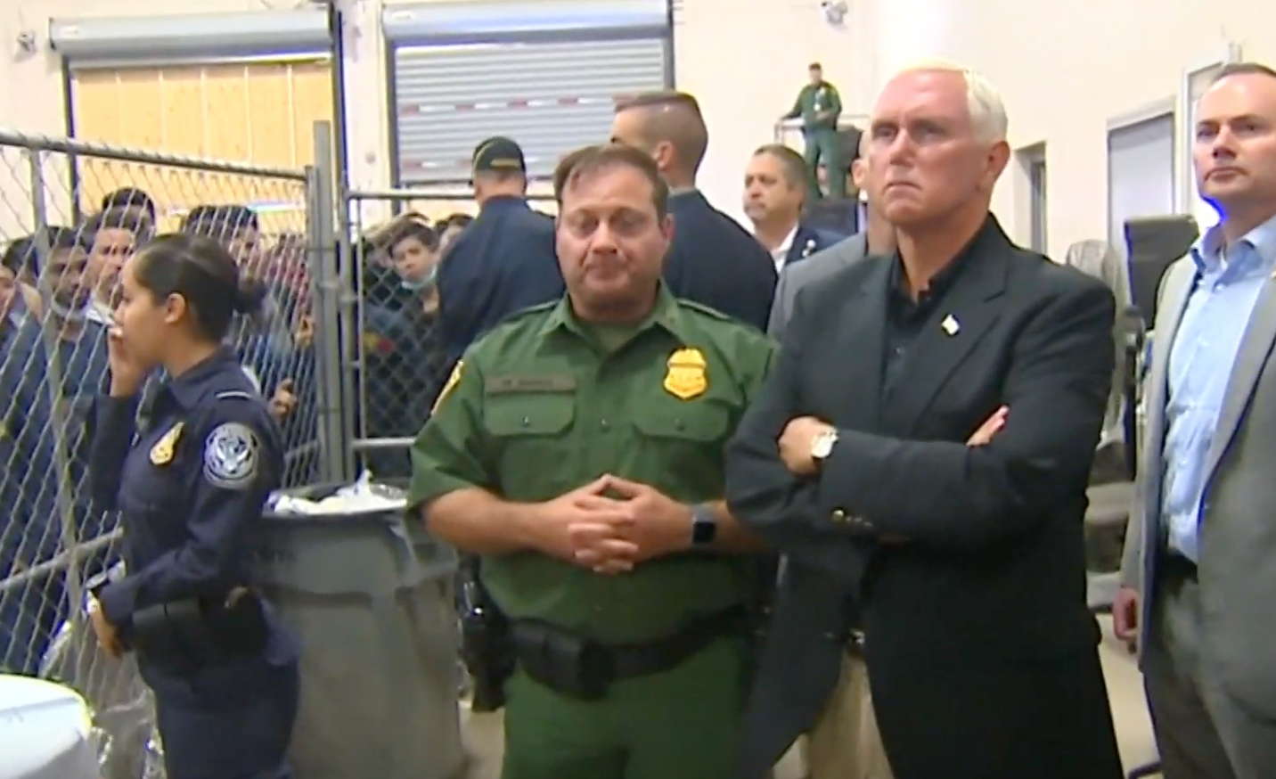 Which Mike Pence realizes, of course. So he stands there with his arms crossed arms and that frosty look on his face…okay, I’ve seen enough, later. And without decent facilities those poor guys are filthy and sleeping on cement.