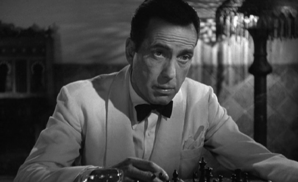 Earth to Chamberlain: It’s precisely because Blaine’s true feelings are buried under a crusty and cynical shell that the character is so memorable. The whole film would collapse if Blaine were to weep and quake with pain a la George Bailey on the snow-covered bridge in It’s A Wonderful Life.