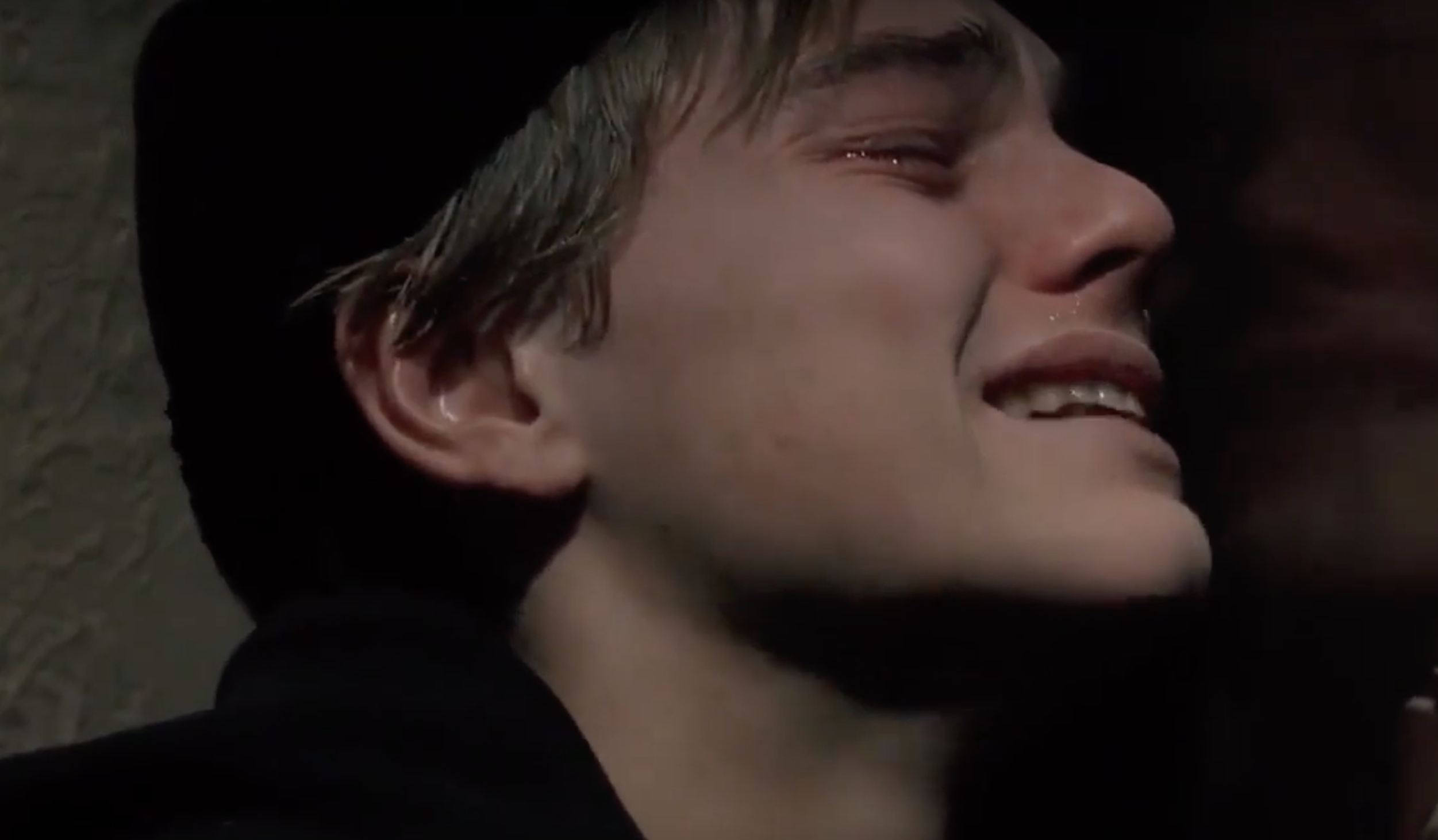This scene is what sold me on Leonardo DiCaprio‘s potential. Not This Boy’s Life or What’s Eating Gilbert Grape, both of which I respected but didn’t especially like, much less want to see a second time. His performance as Arnie was fascinating but at the same time over-delivered, and I couldn’t stand the sight of his (and Johnny Depp‘s) massively obese mom. The Quick and the Dead struck me as posturing flash-bang. Then came The Basketball Diaries, in which Leo played poet-writer Jim Carroll (who died in 2009) and his desperate, smack-addicted life. After this scene I said to myself, “Okay, sooner or later Leo’s gonna hit big.”