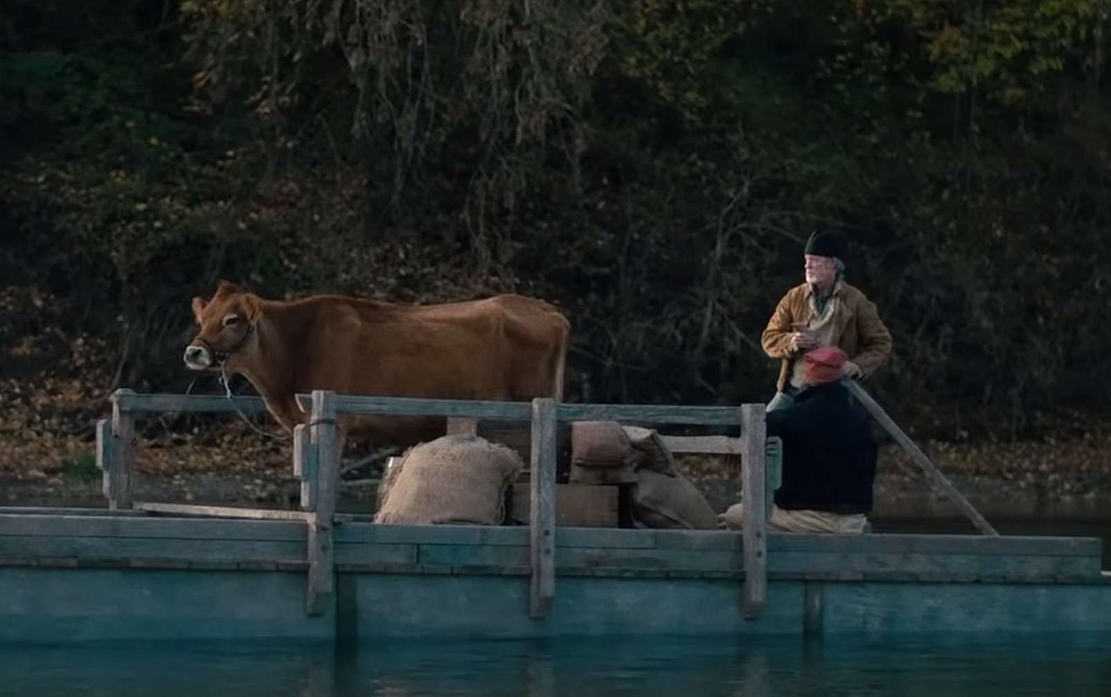 We’re all familiar with Reichardt’s minimalist, low-energy mise en scene (Wendy and Lucy, Meek’s Cutoff, Certain Women), and her longtime co-writing partnership with Jonathan Raymond (First Cow is an adaptation of his 2008 book “The Half Life“) and so on. I guess I was intimidated by the prospect of sitting through another under-lighted, fly-on-a-wall, watching-paint-dry flick, especially with an 1820s Oregon backwoods setting. The only thing I was looking forward was the boxy aspect ratio (1.37), which Reichardt always shoots with.