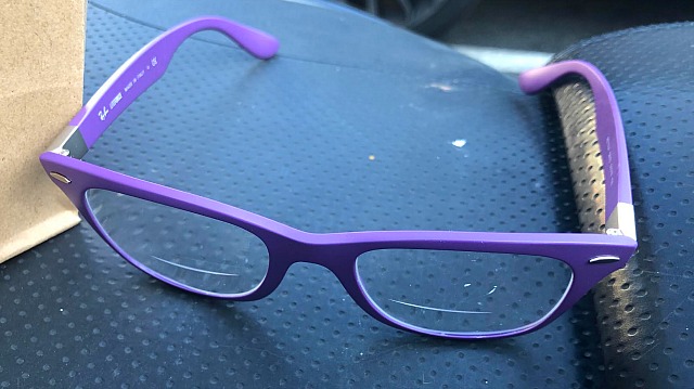 I had some lenses left over and the only frames that fit them are made by RayBan. I wanted bright blue frames but they aren’t available, the eyeglass guy said. All he had were lavender or greenish-yellow frames, so I went with lavender. I’ve been wearing semi-flashy socks and eyeglasses for a long time now so no biggie.