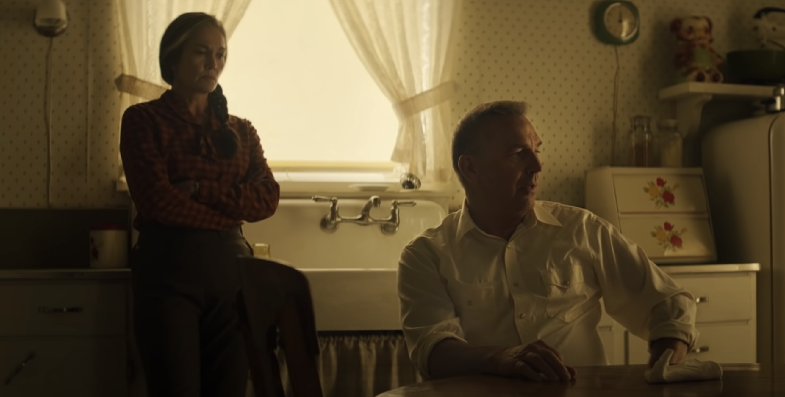 That’s all I’m going to say. I’m not going to elaborate except to say that the film, which is about a pair of grandparents (Kevin Costner, Diane Lane) who’ve lost their adult son in a fatal horse-riding accident, and months later are looking to see about the welfare of their three-year-old grandson after their son’s widow (Kayli Carter) has married a primitive bumblefuck who lives with a family of ornery polecat varmints a la Animal Kingdom and is headed by a cigarette-smoking Ma Barker sociopath (Lesley Manville)…I’ll only say that things turn rather violent around the 80-minute mark and hoo boy.