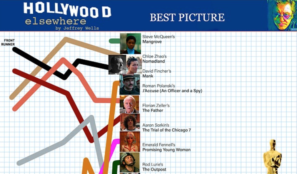 Here’s HE’s latest Best Picture chart. I’m honestly split 50/50 on the merits of Chloe Zhao‘s Nomadland and David Fincher‘s Mank, and so they’re tied for second place. (At least for the time being.) They’re both excellent films, and in a Mangrove-free world either could easily occupy the #1 slot. But Steve McQueen’s film happened, and there’s no question it’s 2020’s finest.