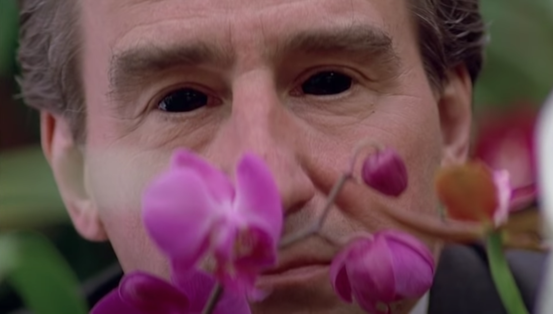 I went searching for Sam Waterston‘s death eyes in this scene from the director’s cut of Oliver Stone‘s Nixon (’95), and in so doing was reminded of how good this Helms-vs.-Nixon confrontation scene really is. Perfect focused and haunted performances from Anthony Hopkins and especially Waterston — God, he’s so much better at conveying chilly remove than caring and compassion.