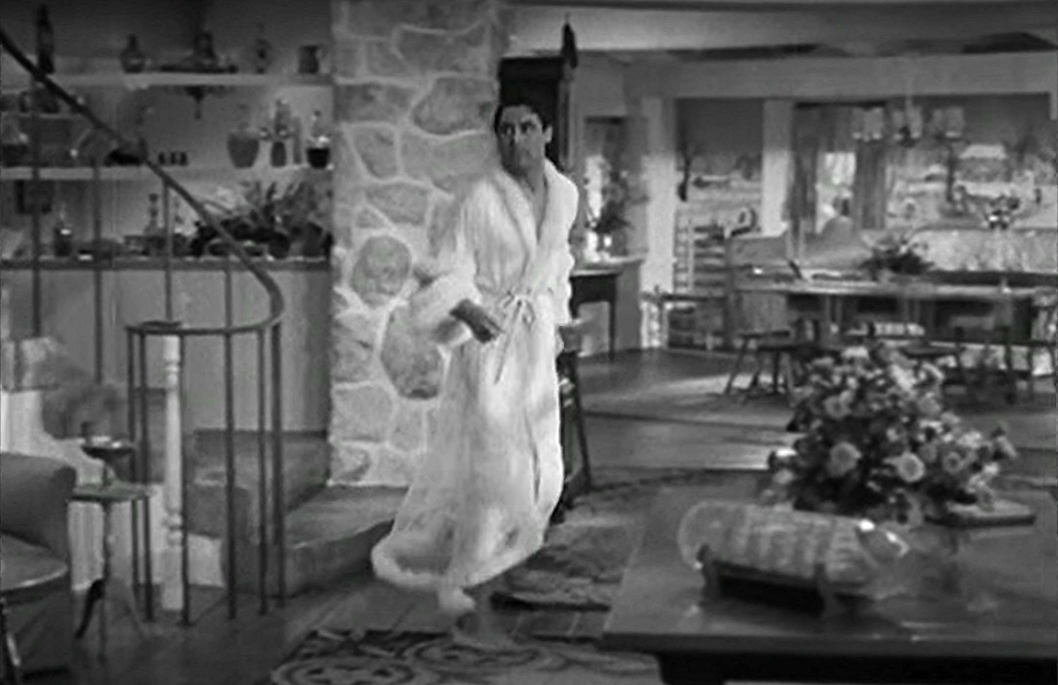 The sprawling Connecticut ranch-style home (French doors, spacious, big lawn, sycamore trees) owned by Katharine Hepburn‘s wealthy mother in Bringing Up Baby became a real thing. Howard Hawks, director of the 1938 screwball comedy, and his wife “Slim” built a home based on the design. They either called it “Hog Canyon” or it was built in Hog Canyon — I could never figure out which. (Originally referenced in “Legendary Movie Homes,” posted on 3.17.21.)