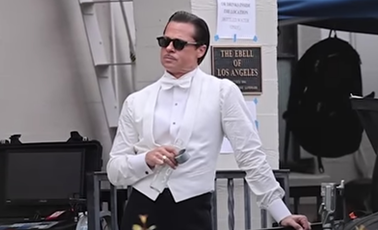Pitt was captured yesterday during a break from filming at The Ebell of Los Angeles (743 So. Lucerne Blvd, Los Angeles, CA 90005), which is often used for period filming. The Ebell includes a clubhouse building and the 1,270-seat Wilshire Ebell theatre.