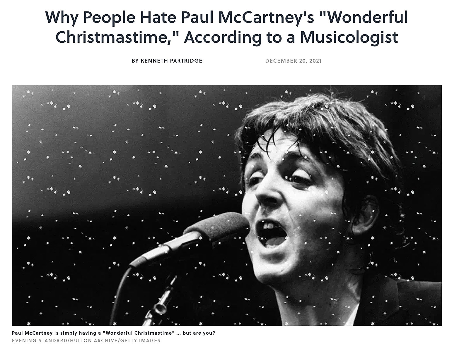 Yes, of course — John Lennon‘s “And So This Is Christmas” is a much better tune, by any criteria you’d care to mention. But I’ll bet Macca’s is the most popular among the hoi polloi.
