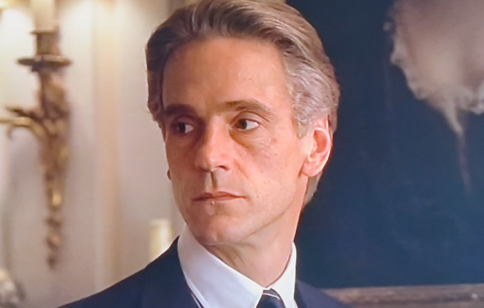 There’s a brief moment near the very beginning when Malle conveys the “lack of passion” aspect; he does this by having Irons gaze at his well-tended living room with a look of utter boredom. Please accept my apology for failing to properly frame the footage, but here it is: