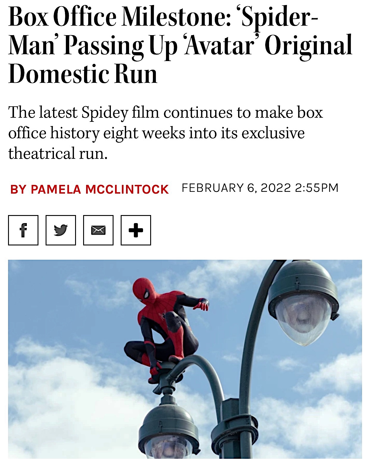 The Academy members, it seems, are too blind and obstinate to understand that Spider-Man: No Way Home deserves a serious “thank you” for levitating theatrical, not just in terms of revenues but from the buoyantspiritofthefilm and the overall joy factor…if they don’t understand that a single Best Picture nomination (oneoutoften!) is the least they can do to celebrate the fact that S-M: NWH delivered a spiritual booster shot that lifted all boats…if they’re too old and out of touch to at least recognize what this film managed to do and thereby give it a Best Picture nomination in tribute, then you know what? Tohellwiththem. The Oscars are an island unto themselves and whatever happens, happens.