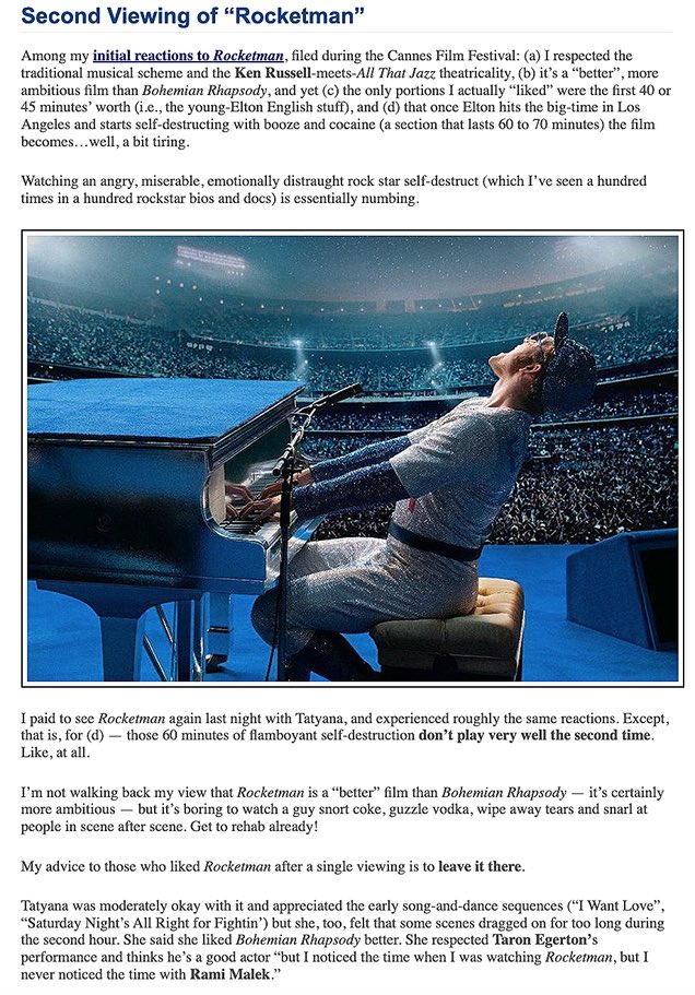 If you wanted to self-delude you could tell yourself that this flash-and-dance number from Dexter Fletcher‘s Rocketman is mostly uncut — a single dazzling shot. It certainly seems that way from the 1:10 mark (once Taron Egerton appears from an opening in the fence) until he retreats into the pub and joins his bandmates around the 3:40 mark. 150 seconds!