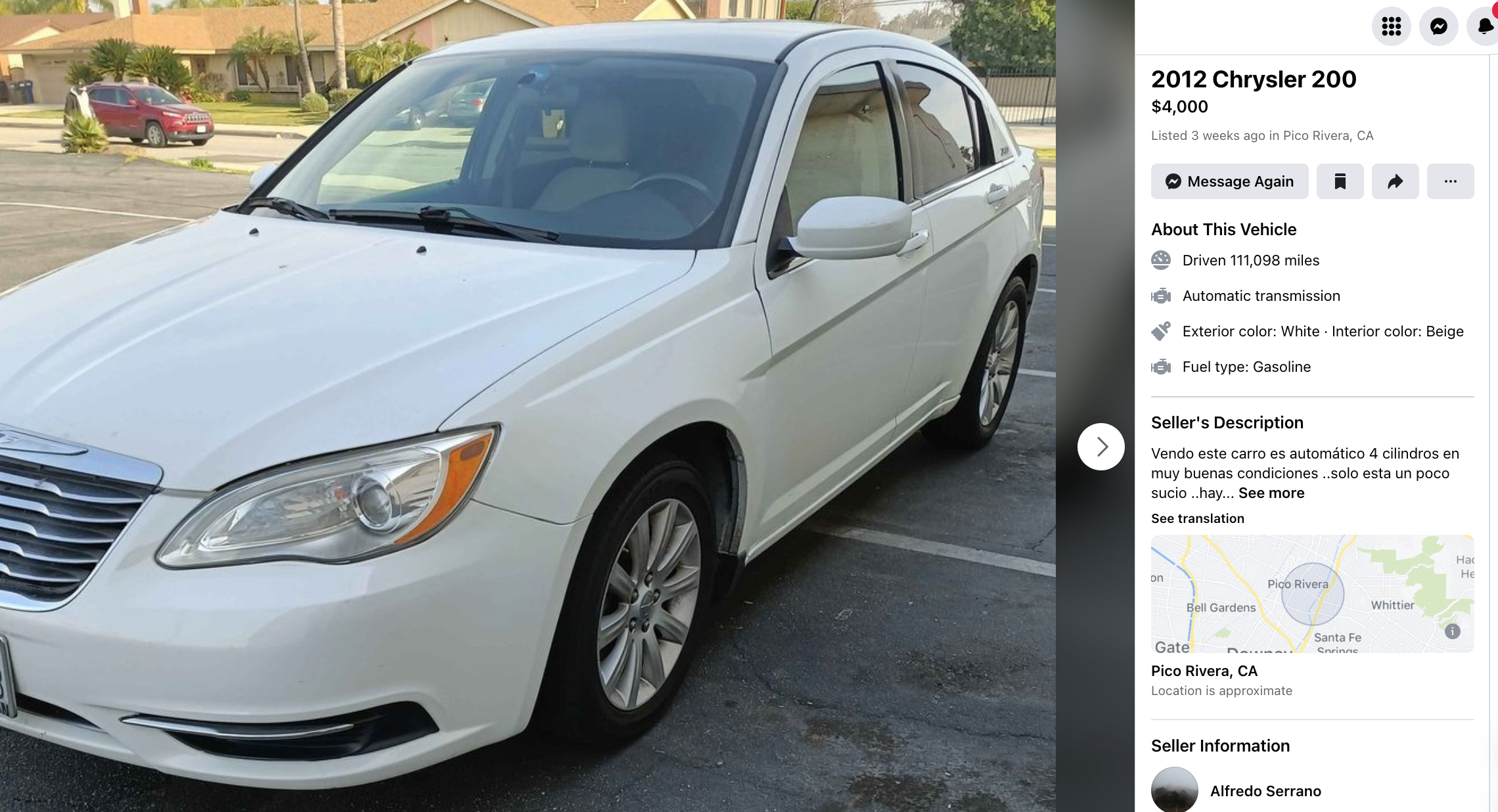 Compton seller last week: “Everyone knows that if you buy a ten-year-old car, you’re buying a car that will experience a few problems. There are no whistle-clean deals…no blemish-free, pure-as-the-driven-show used cars. You just have accept that and go with your gut…”