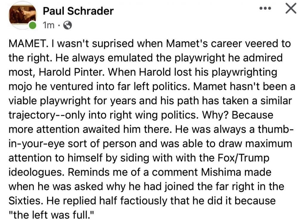 The Edge premiered at the 1997 Toronto Film Festival. Director Lee Tamahori, screenwriter David Mamet and producer Art Linson all gave interviews. I can’t recall if I interviewed Mamet then or at some later point, but I definitely recall explaining my alternate Edge ending.