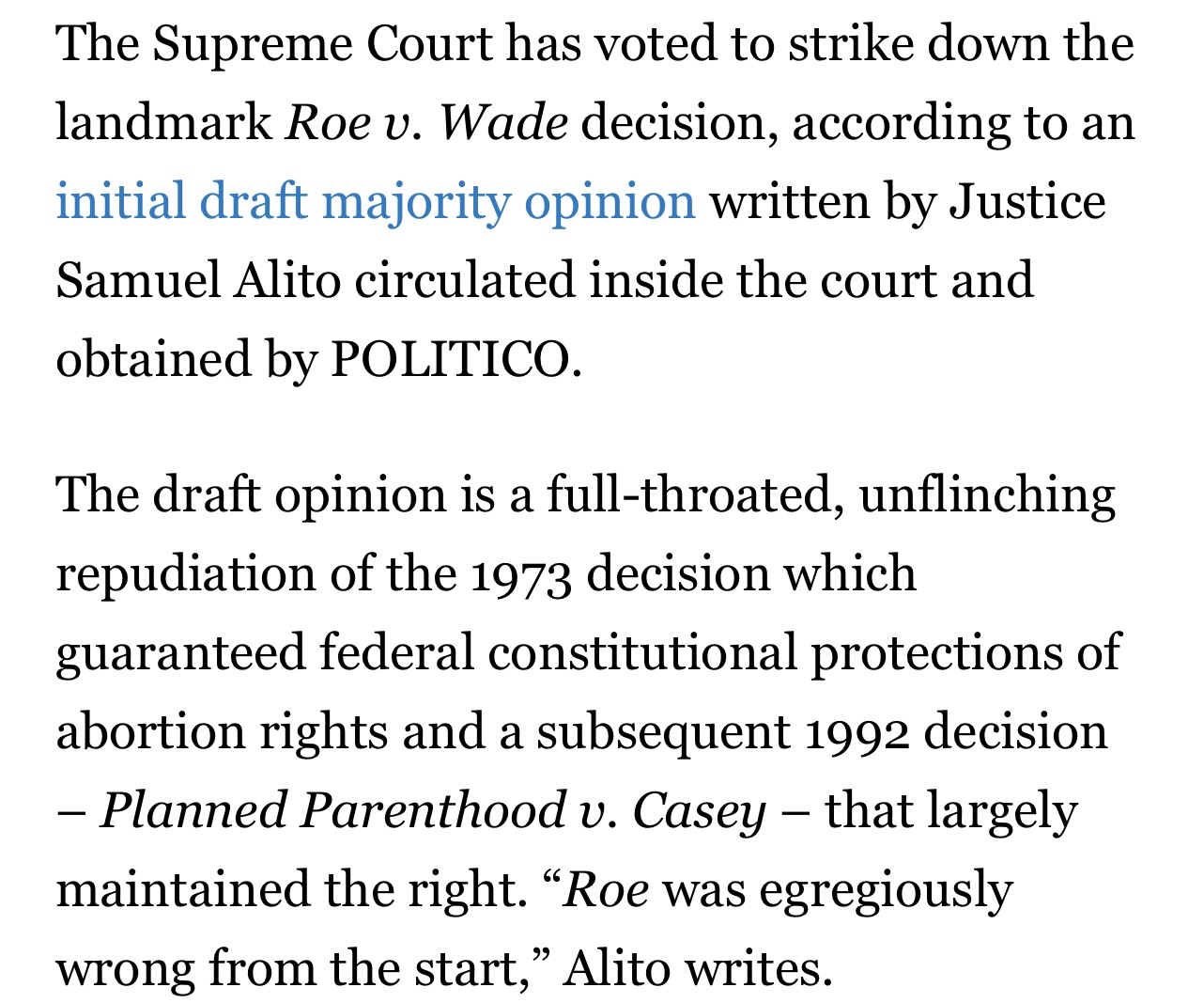We all knew it was inevitable, and now, according to an exclusive Politico report, the 1973Roev.Wade pro-abortion ruling has officially been trashed as the Supremes have voted against it. The decision was conveyed in a leaked letter draft by Justice Samuel Alito.