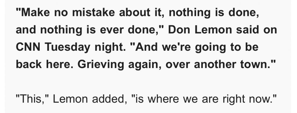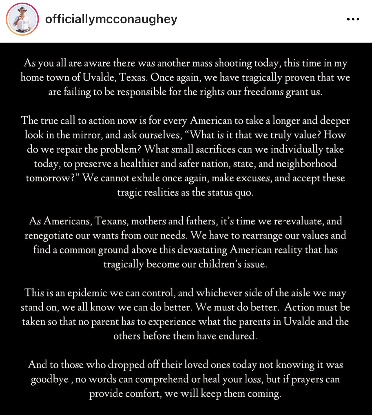 Due respect to Matthew McConaughey but a call to “do better” is something you say when you want to raise your grade-point average or swim faster in a 400-meter freestyle competition. And in the wake of this latest school shooting, anyone who issues a statement containing the word “prayers” (as in “thoughts and prayers”)…I’m sorry but that’s a gun-lobby sentiment.