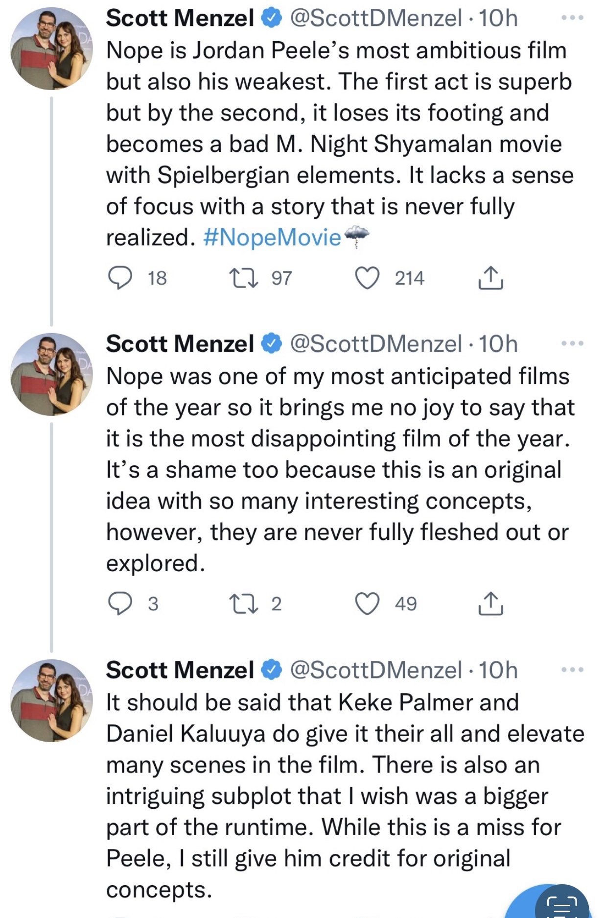 Scott Mantz, one of the happiest, smiling-est and most effusive film buffs and Will Rogers-like operators in the early-screening fraternity, has posted a “no” reaction to Jordan Peele‘s Nope.