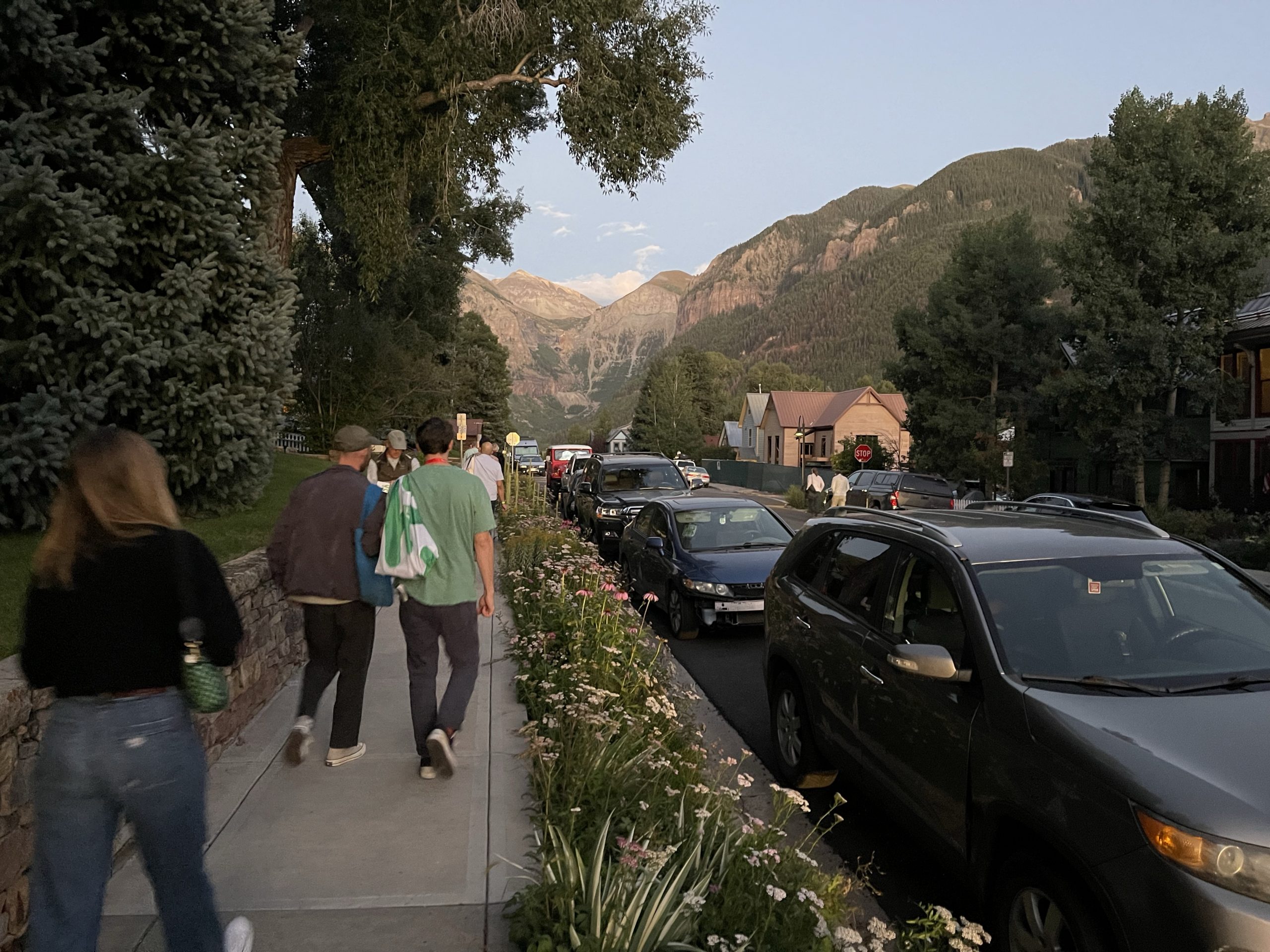 9.2, 6:50 am: After 14 or 15 hours of somewhat uncomfortable travelling (including five hours on the carpeted floor at Washington National), HE pulled into Telluride yesterday afternoon around 4:15 pm.