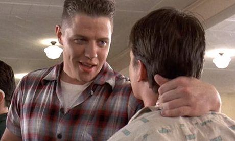 This morning Jordan Ruimy sent me a screen capture of a half-interesting movie idea [after the jump]. I’ve re-worded it and used a shot of Back to the Future‘s “Biff” for an illustration, to wit: “A late 1950s or early 1960s high-school bully (like Sam Rechner or Oakes Fegley in The Fabelmans) is somehow transported into a 2022 high school or college — an institution teeming with diversity, Tik-Tokers and trans kids.”