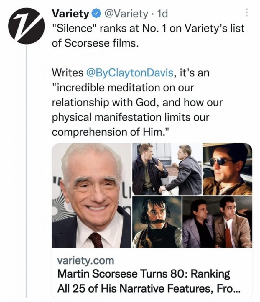 Hugo, Silence, BringingOutTheDead, Kundun, The AgeofInnocence, The Aviator, Shutter Island, CapeFear and New York New York (“an honest failure”).