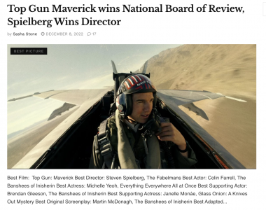 Wait…Glass Onion‘s Janelle Monae wins Best Supporting Actress? The NBR guys thought she was better than Banshees of Inisherin‘s Kerry Condon? That’s ridiculous. That’s on the level of the New York Film Critics Circle handing their Best Supporting Actress trophy to Keke Palmer. Even handing the Best Director prize to RRR‘s S. S. Rajamouli makes more sense. What happened to Tar? Answer: They hated it.