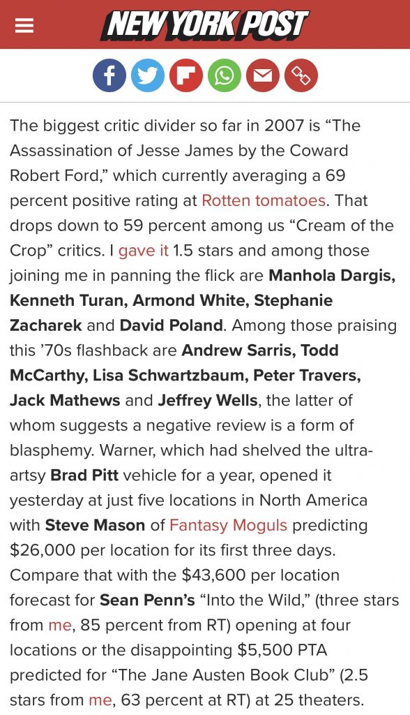 “I don’t know if it’s Robbie or Pitt’s best work… but you won’t see any work from them that is better than this. Margot Robbie is the Energizer bunny…she will not stop. It’s like watching, in one film, the best and the worst of desperation and manic depression. Stunning performance. Brad Pitt is pretty much the exact opposite, style-wise. His character is already a virtual deity, so the performance is all in his eyes, careful physicality, and in the performance of the script.