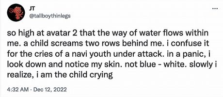 But Babylon, sadly, is not an Academy-friendly film, and Poland knows this. He’s bending over backwards to be as supportive as possible, and I understand the impulse as I feel that bravura filmmaking of this sort, however brash or grotesque or off-putting as it is from time to time, shouldn’t be trashed. Auteurist energy of this sort should be applauded, as least by the standard of “A for effort..”