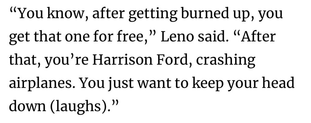 35 years ago Lethal Weapon used a funny jumping-off-a-building gag. Ragged-edge cop Mel Gibson is sent to the top of a four-story building in West Hollywood to talk an unstable guy out of making a suicide leap. Gibson winds up cuffing himself to the guy and jumping off the building, and they’re both falling to their deaths…not. They land on one of those huge inflated tent-sized bags…whomp!…that cops and firemen use to save people. All is well.