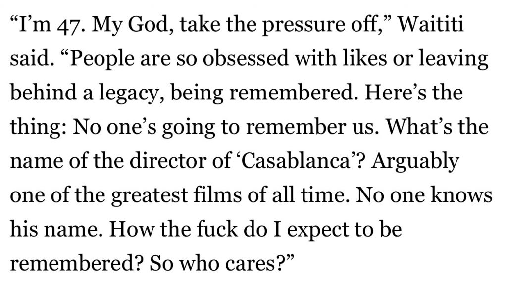 Whenever I hear someone say that a famous person he/she has run into socially is “sooo nice” or “not nice,” I give them a death-ray look that would stop Gort in his tracks. “Nice” is welcome, of course, but overrated. What matters to me is “does a famous person I’m speaking to really mean what they say, or are they some kind of performative orangutan going through the motions?”