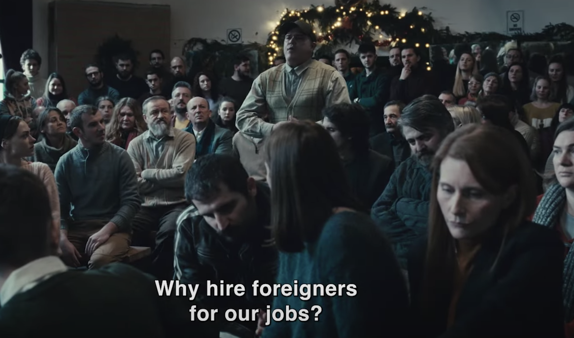 R.M.N. is a meditative slow-burn parable that you’ll either get or you won’t, but there’s no missing the brilliance of a one-shot town hall meeting in which the locals are demanding that the Sri Lankans be expelled from the community.