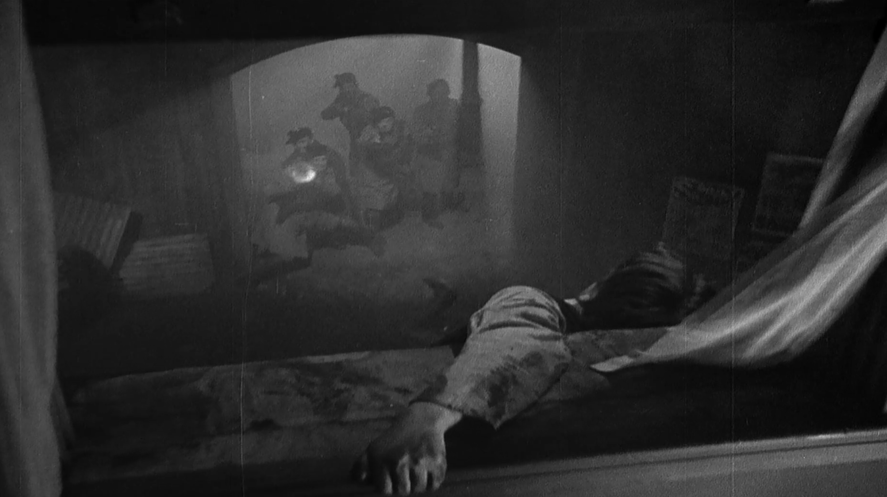 And that final church scene after he’s been shot four or five times in the gut, bleeding to death…that scene got me all the more. When Gypo stumbles into a church and finds Frankie’s mother (Merkel) and says with that pleading, nearly whispering, wounded-ox voice, “Twas I who informed on your son, Mrs. McPhillip…forgive me.” And the poor woman does for some reason, and then comforts him with “you didn’t know what you were doin’.” Gypo stands and spreads his arms before a crucifix, calls out to the man he betrayed and condemned to a brutal death (“”Frankie! Your mother forgives me!”), clutches his midsection, drops to the church floor and dies.