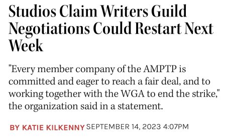 “Negotiating wise, the WGA has yet to send a more detailed response to what’s considered egregious about the last offer, but it appears the CEOs and AMPTP are desperate to try to mostly hold the other unions to the same deal the DGA received. That won’t work for writers and actors, since both have different needs.