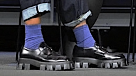 As far as I can discern Elvis Mitchell‘s “try-hard” shoes, worn during last Tuesday’s Academy q & a for David Fincher‘s The Killer, are made by Prada. A Prada web page describes them as “Monolith brushed leather lace-up shoes,” and says they cost $1270.