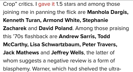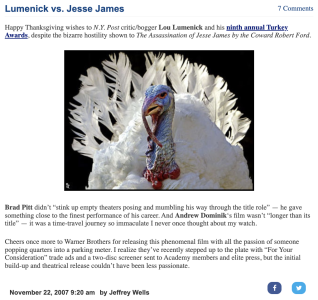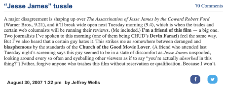 This led, in any event, to re-reading my original 8.31.07 review plus an amusing back-and-forth that happened between myself and New York Post movie guy Lou Lumenick. It was triggered by mentioning the term “blasphemy.”