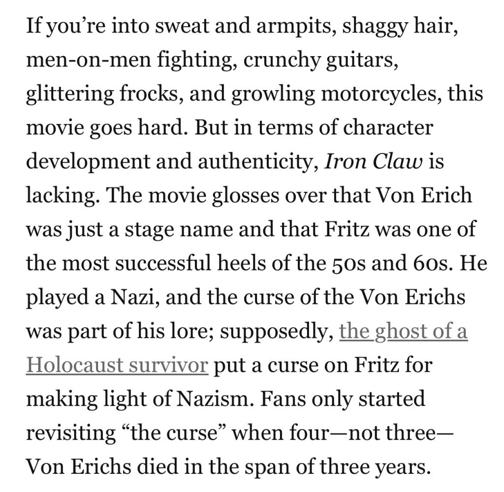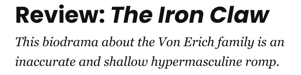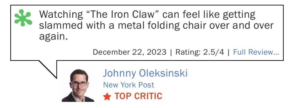 There’s no disputing that TheIronClaw is coarse, bruising and emotionally shameless — a death-trip family flick with an arch-villain of a paterfamilias (Holt McCallany’s Fritz Von Erich) whose malice is barely addressed by his sons and never confronted.
