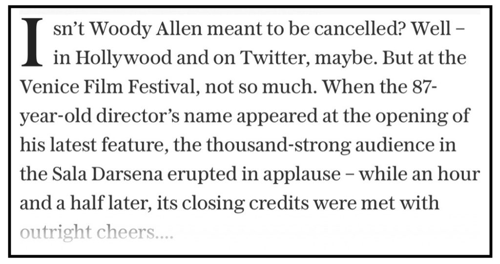 “The climate of fear we’ve all been living through since ’18 or thereabouts goes almost entirely unaddressed by people who cover film. They (we) just pretend like it wasn’t happening, that people weren’t losing their jobs, that every word uttered has to be carefully monitored so as not to commit a thought-crime.