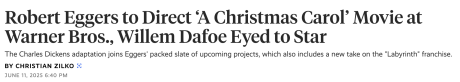 Robert Eggers‘ The Witch (’15) and The Lighthouse were films of enormous haunting power and riveting integrity. I didn’t much care for The Northman (’22…Nicole Kidman‘s excellent performance aside) and I pretty much hated Eggers’ Nosferatu and now fecking Ebenezer Scrooge? What the hell is going on?