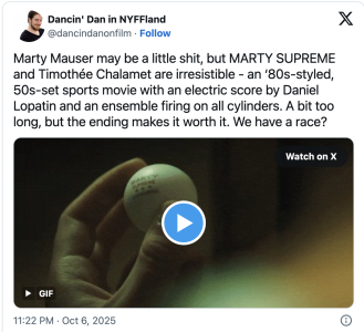 We’ve all become sick of needlessly long movies…films running between 130 and 150 minutes or longer for no apparent reason other than a lack of basic narrative discipline. But this doesn’t appear to be an issue in the case of Josh Safdie‘s Marty Supreme (A24, 12.25).
