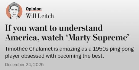 1. Josh Safdie‘s Marty Supreme (the finest, most adrenalized, most type-A-meets-grade-A film of the year….no politics, just pogo sticks)