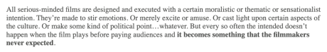 …and then it opened and the audience said “eff the social critique or condemnation aspect…we think the main protagonist is actually kinda cool or at least, you know, engagingly colorful.”