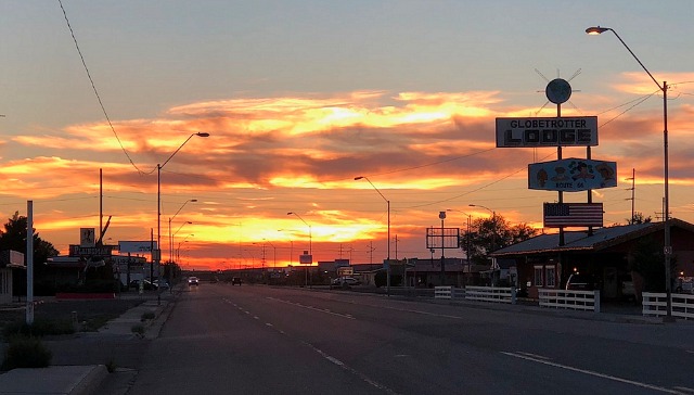 Winslow and Holbrook, specifically. Poor Winslow isn’t exactly down-at-the-heels, but it doesn’t seem all that economically robust. It has a swanky Spanish-styled hotel and two or three nice bars or restaurants (maybe more), but the atmosphere feels a bit flat. If it weren’t for that Jackson Browne-Glenn Frey song “Take It Easy,” things would probably be that much leaner. There are statues of Browne and Frey dead smack in the center of town.
