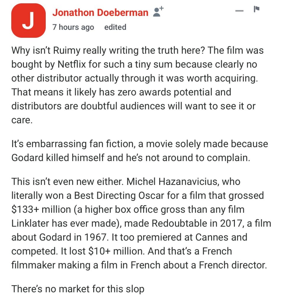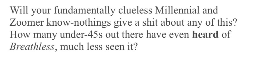 HE reply: I fear that a significant portion of the Joe and Jane Popcorn community is too timid-hearted, too robotic of attitude, too dull-witted and far too closed- and conventional-minded to really get the wild-ass, New York Jewish hustler, pogo-stick elation of Marty Supreme.