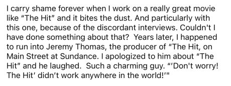 When I say “over-the-cliff woke shit”, I’m partly referring to the purist progressive mentality represented by your scolding, deeply-in-denial Hollywood Elsewhere nutters like GlennRunciter and Victor Laszlo.