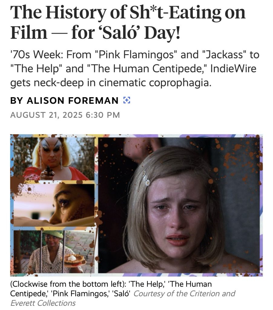 I respect Pier Paolo Pasolini’s Salo as much as the next film lover, but the recentIndieWirearticles about this shocking, 50-year-old portrait of fascist cruelty and sadism are…how can I put this?…a little diseased and flirting with over–the–topperversity, seemingly at the behest of executive editor Ryan Lattanzio.