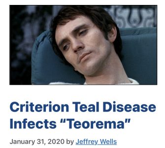 To go by frame captures provided by DVD Beaver’s Gary W. Tooze, the Criterion teal monsters are back, and this time they’ve desecrated Pier Paolo Pasolini‘s Teorema.