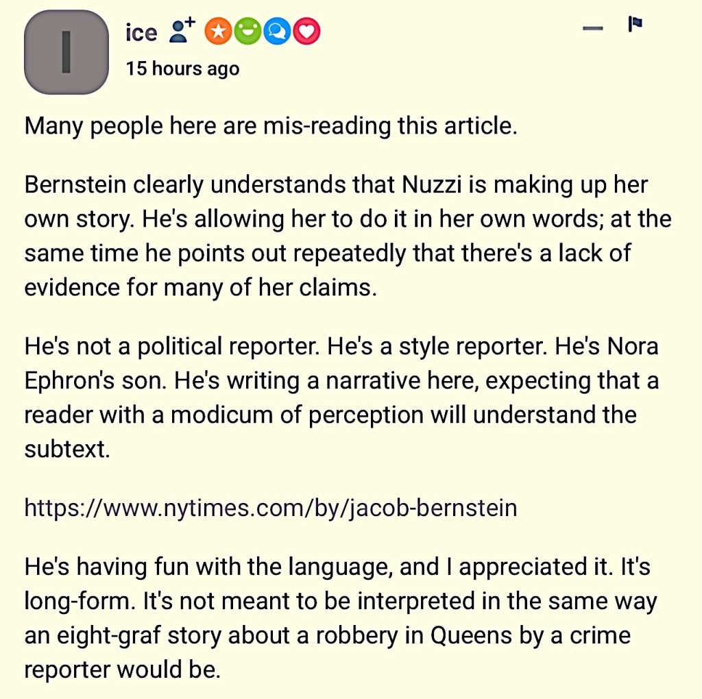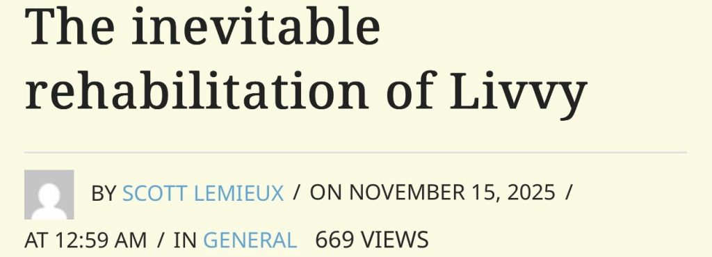 The snarky, morally reactive, curiously wild comment deluge in response to Scott Lemieux’s “The Inevitable Rehabilitation of Livvy”, an 11.15 riff about Jacob Bernstein’s N.Y. Times profile of Olivia Nuzzi, is one for the ages. Wowsah! Yowsah! The site is lawyersgunsmoneyblog.