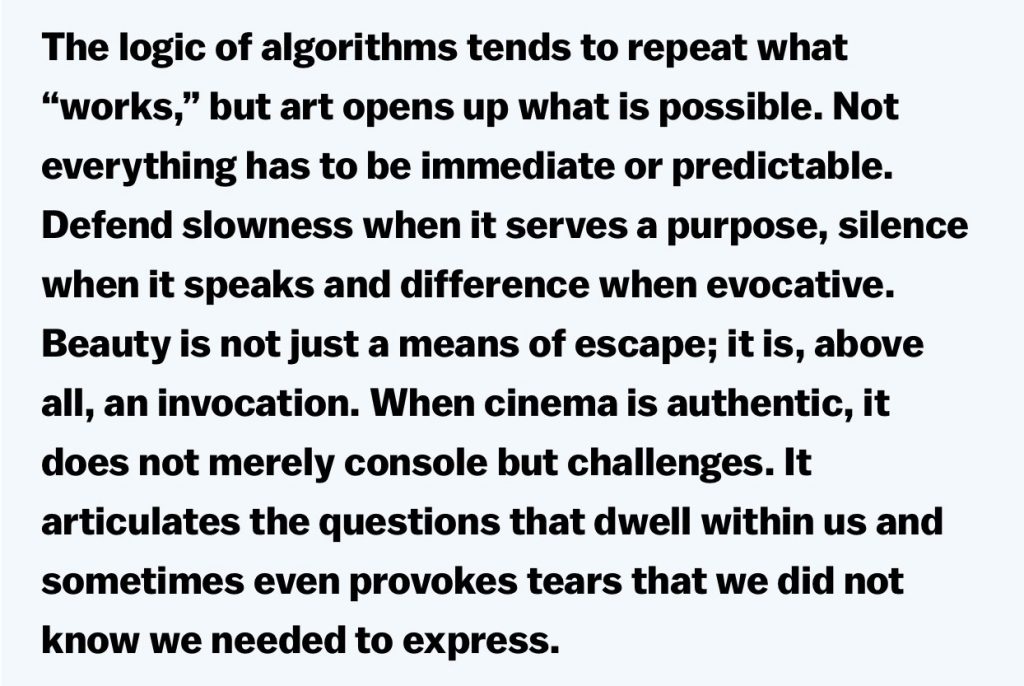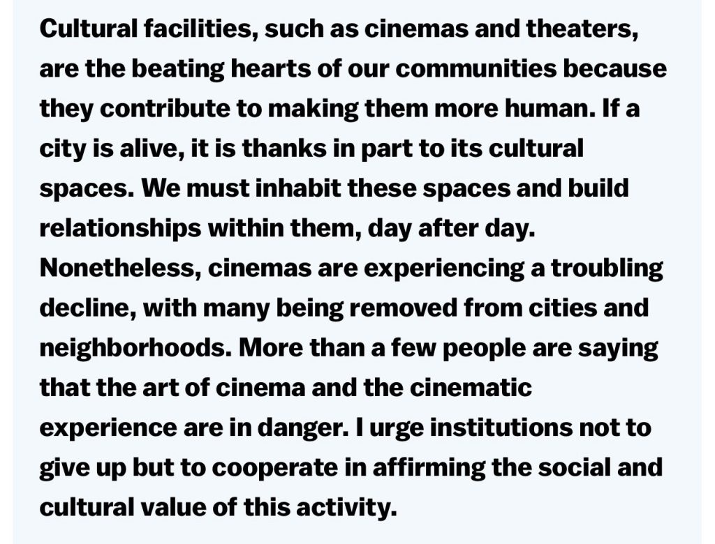Repeating: The art of cinema and the faith of cinematic churches is alive and well if (a) you can attend the above-named major film festivals or (b) if you restrict yourself to connoisseur movie houses (Film Forum, New Beverly, Vista, etc.) and upscale, movie-friendly museum forums like MOMA, LAFCA, London’s Princess Anne, etc.
